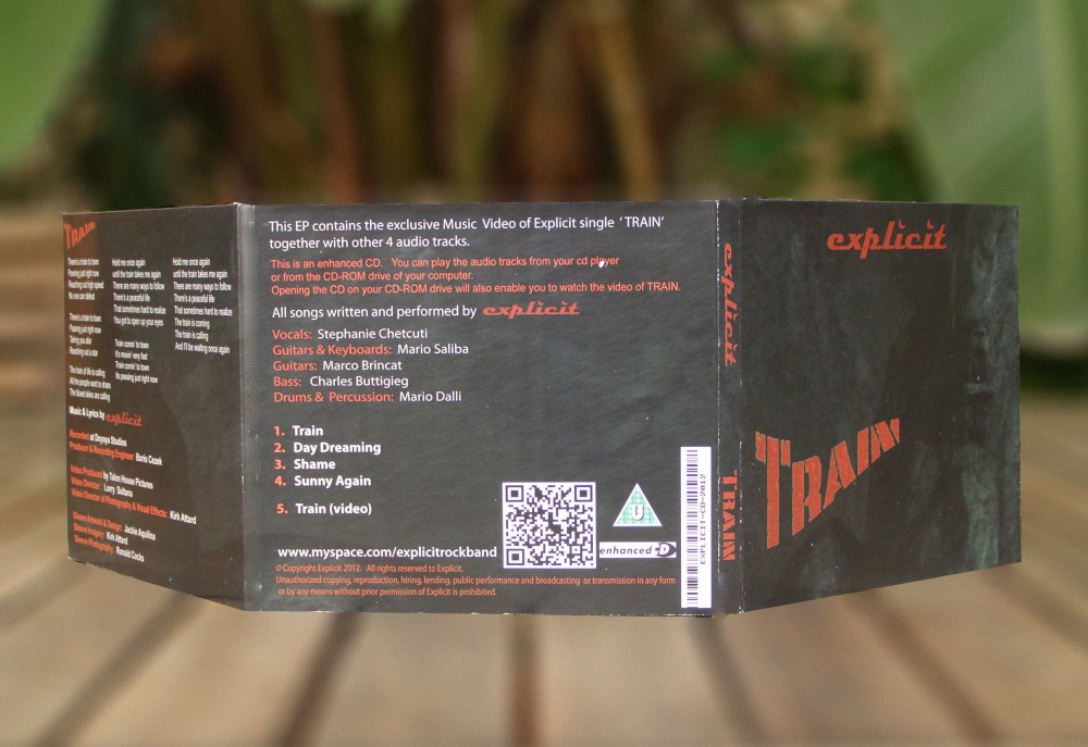 Artwork Design for a CD Sleeve for an album release by Alternative Rock Band ‘Explicit’ (Malta) – “Train” that included a great amount of Photo Editing.