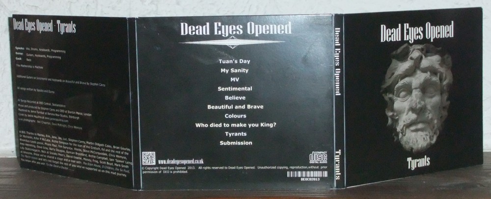 Artwork Design for a CD Sleeve for an album release by Gothic Rock Band ‘Dead Eyes Opened'(Edinburgh) – “Tyrants”.